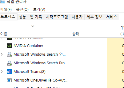 그런데 작업관리자에 보니 내 pc에는 해당 프로세스가 없었다...