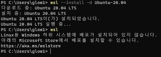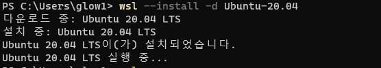 이후 다시 wsl 명령으로 ubuntu를 설치해주었다.