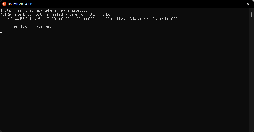 오랜만에 PC를 셋팅하다보니 WSL이 빠져있어 재설치했는데 아래와같은 에러가 뜨더군요. 문자가 깨져서 구글링하다가 해결방법을 찾아 공유합니다. 깨진 문자중에서도 kernal이 보이는걸 보면 kern