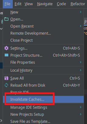 File - Invalidate Caches... 를 클릭한다.